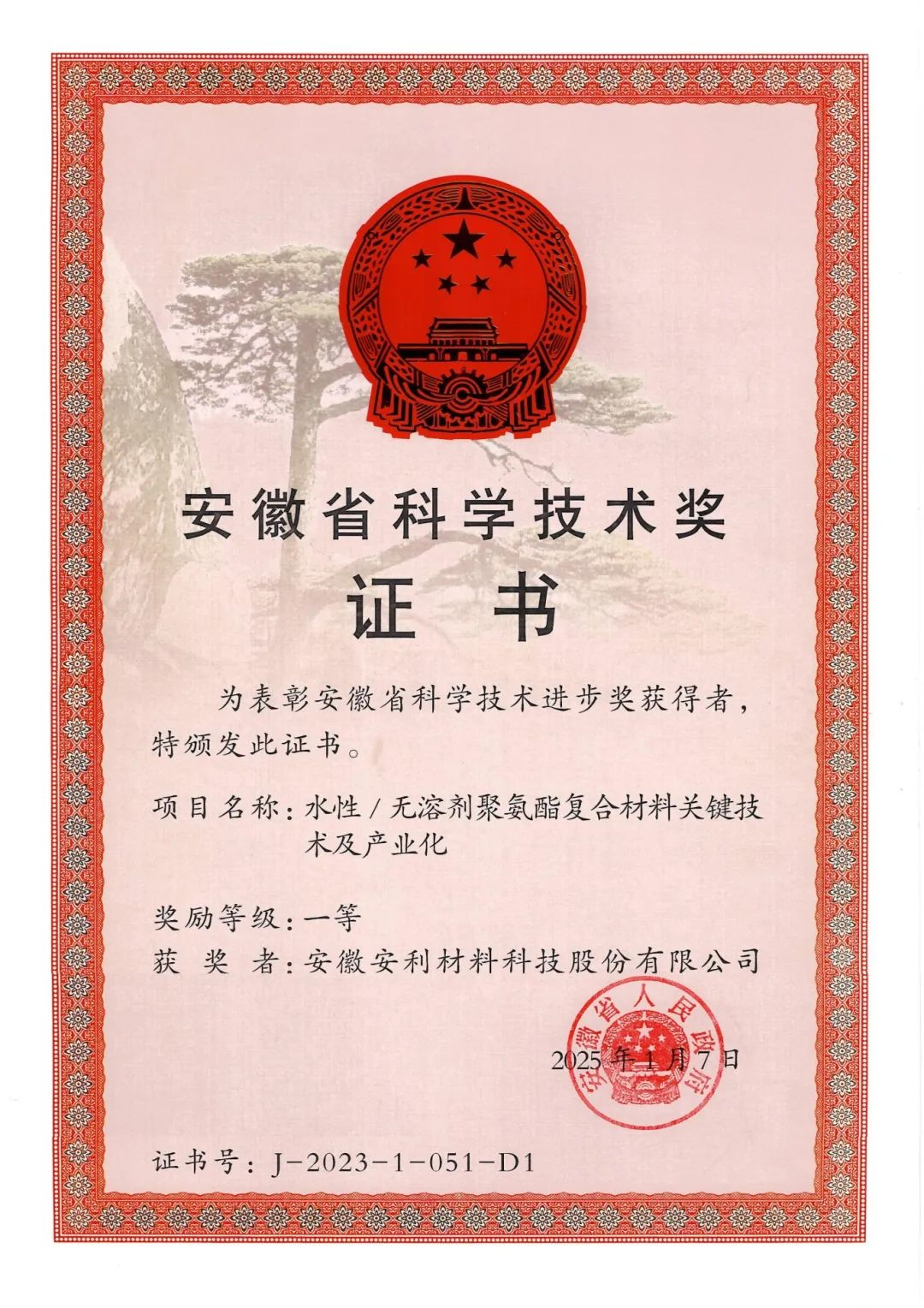 近日,安徽省委、省政府组织的全省科技创新大会在合肥隆重召开,会上通报了2023年度安徽省科学技术奖获奖名单,安利股份(300218.SZ)“水性/无溶剂聚氨酯复合材料关键技术及产业化”项目荣获安徽省科技进步一等奖。安利股份(300218.SZ)副总经理黄万里参加大会,并作为唯一一家民营企业代表上台接受安徽省委书记梁言顺颁奖。此次全省共评定科学技术奖259项,其中科技进步一等奖仅32项。