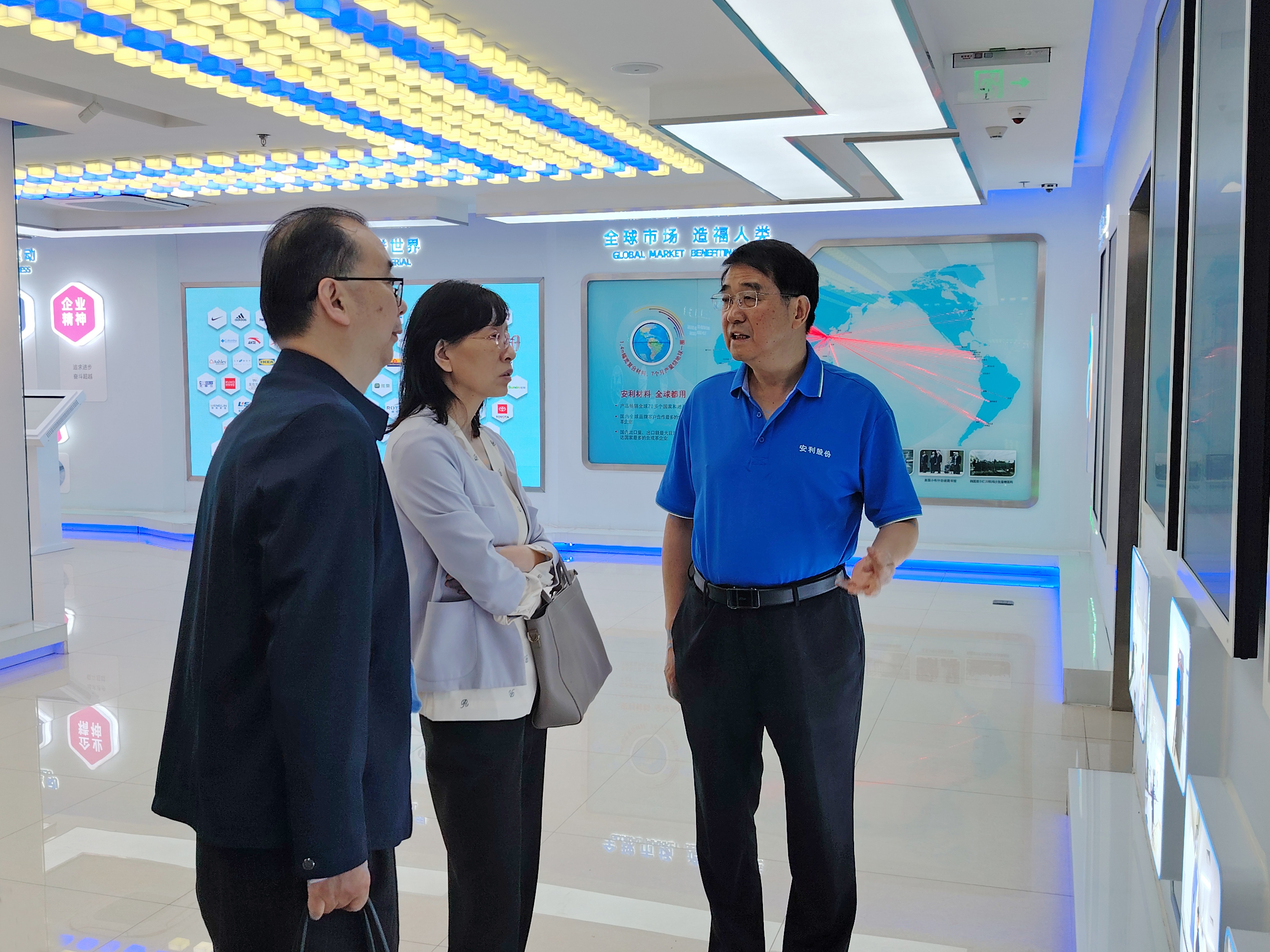 葛敏部长一行实地参观了安利股份展厅。姚和平董事长简要介绍了公司发展历程、技术创新、产品应用及出口情况。葛敏部长认真聆听,不时驻足交流,深入了解国际合作和竞争情况。