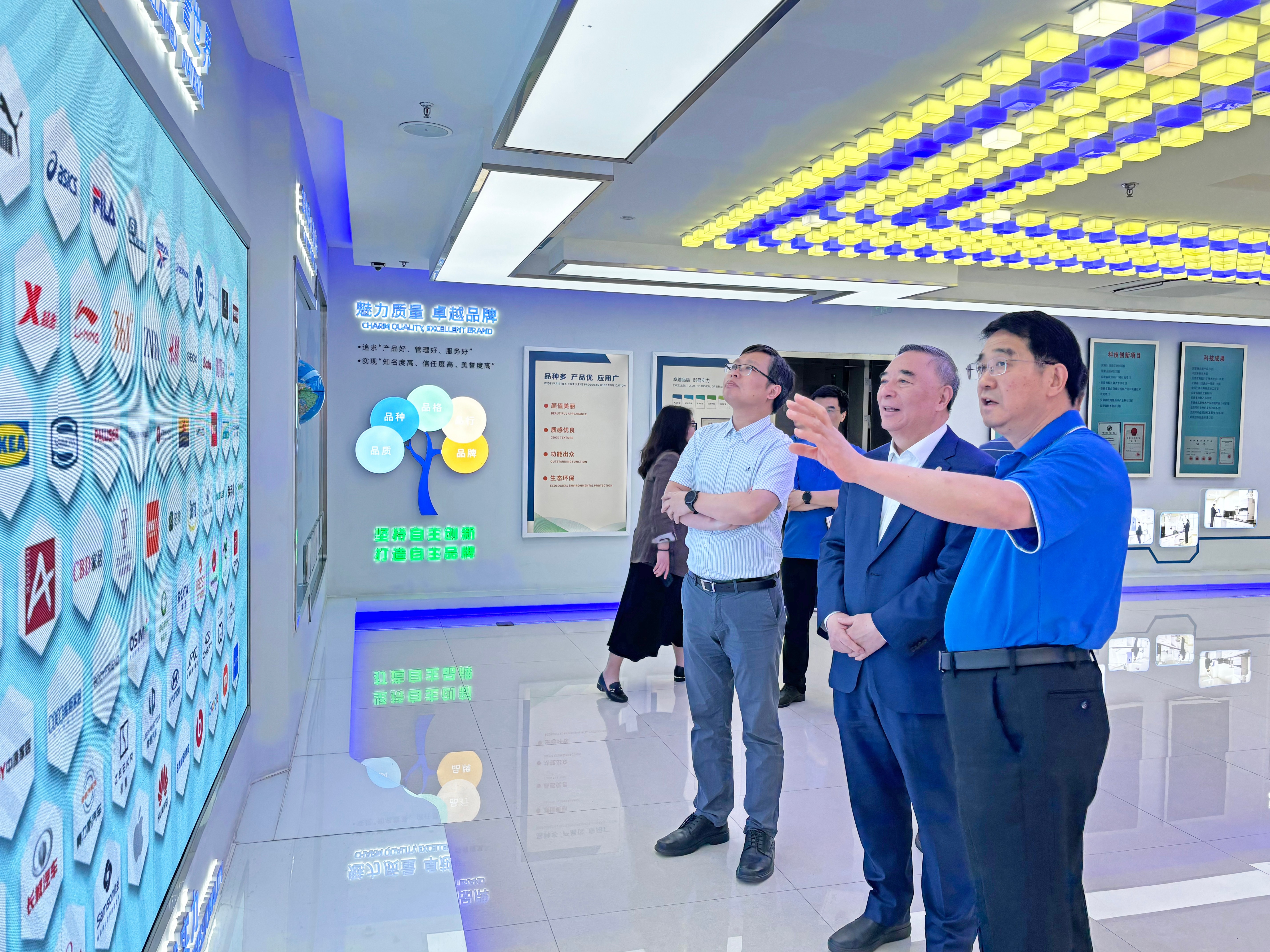 姚和平董事长陪同宋志平会长一行参观了企业展厅,并简要报告公司发展历程、技术创新、产品应用、客户合作、绿色环保等情况。安利股份坚持品牌引领、创新驱动,不断占领全球技术和市场高地,凭借优良的品质和口碑,赢得了众多国内外头部品牌客户的青睐。