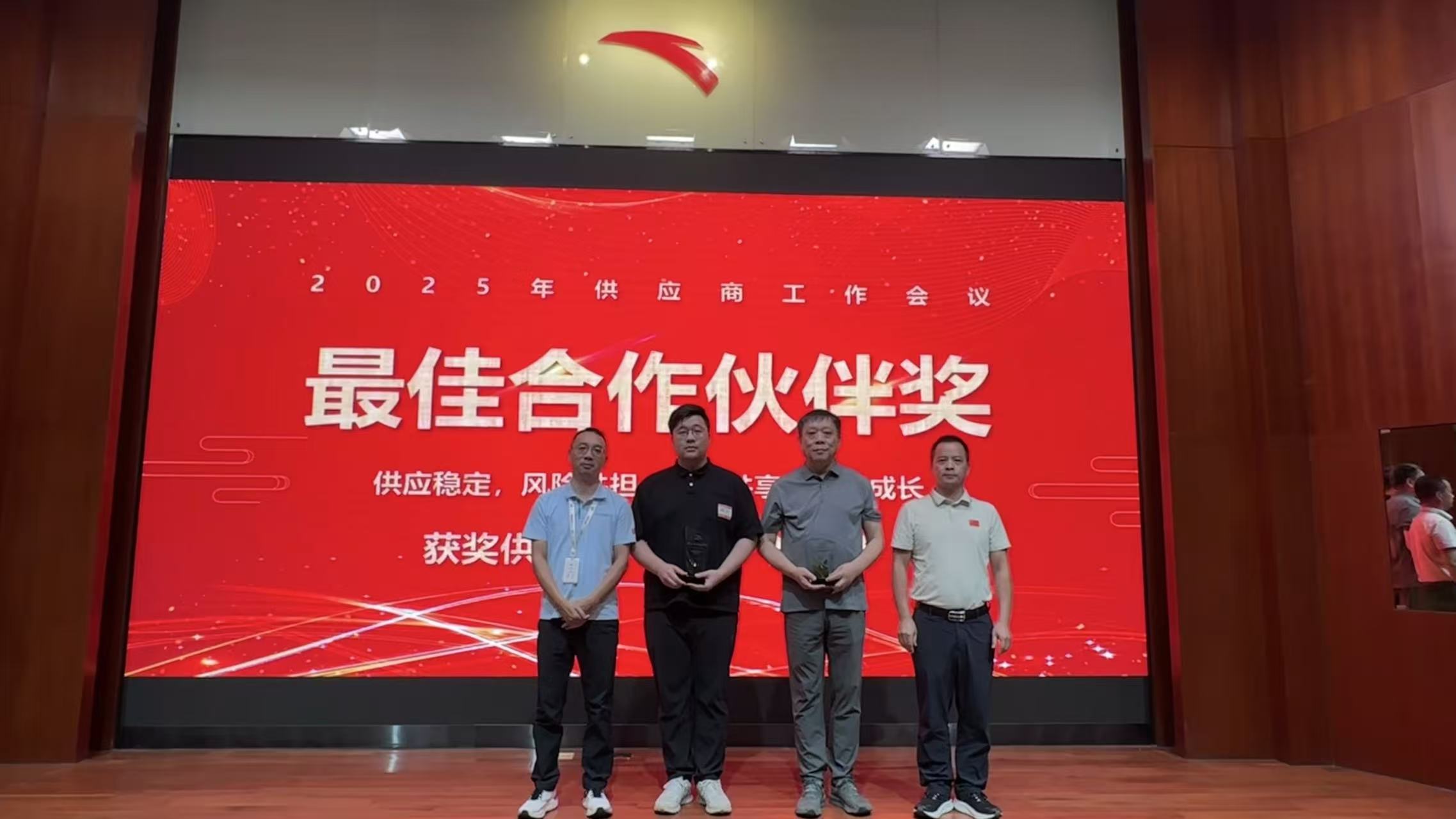 10月16日,安踏鞋生产晋江区召开供应商工作会议,总结表彰2025年度优秀供应商绩效表现。安利股份(300218.SZ)与普斯特两家公司荣获“最佳合作伙伴奖”,安利股份凭借出色的综合实力成为革料、薄膜类别中唯一获此荣誉的供应商,是安踏园区对安利股份在“供应稳定、风险共担、趋势共享、协同成长”四个方面优异表现的充分肯定。安利股份副总经理胡东卫出席会议并领奖。