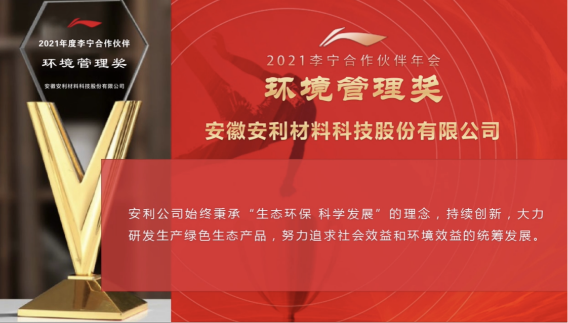 安利股份获李宁公司2021年“环境管理奖”