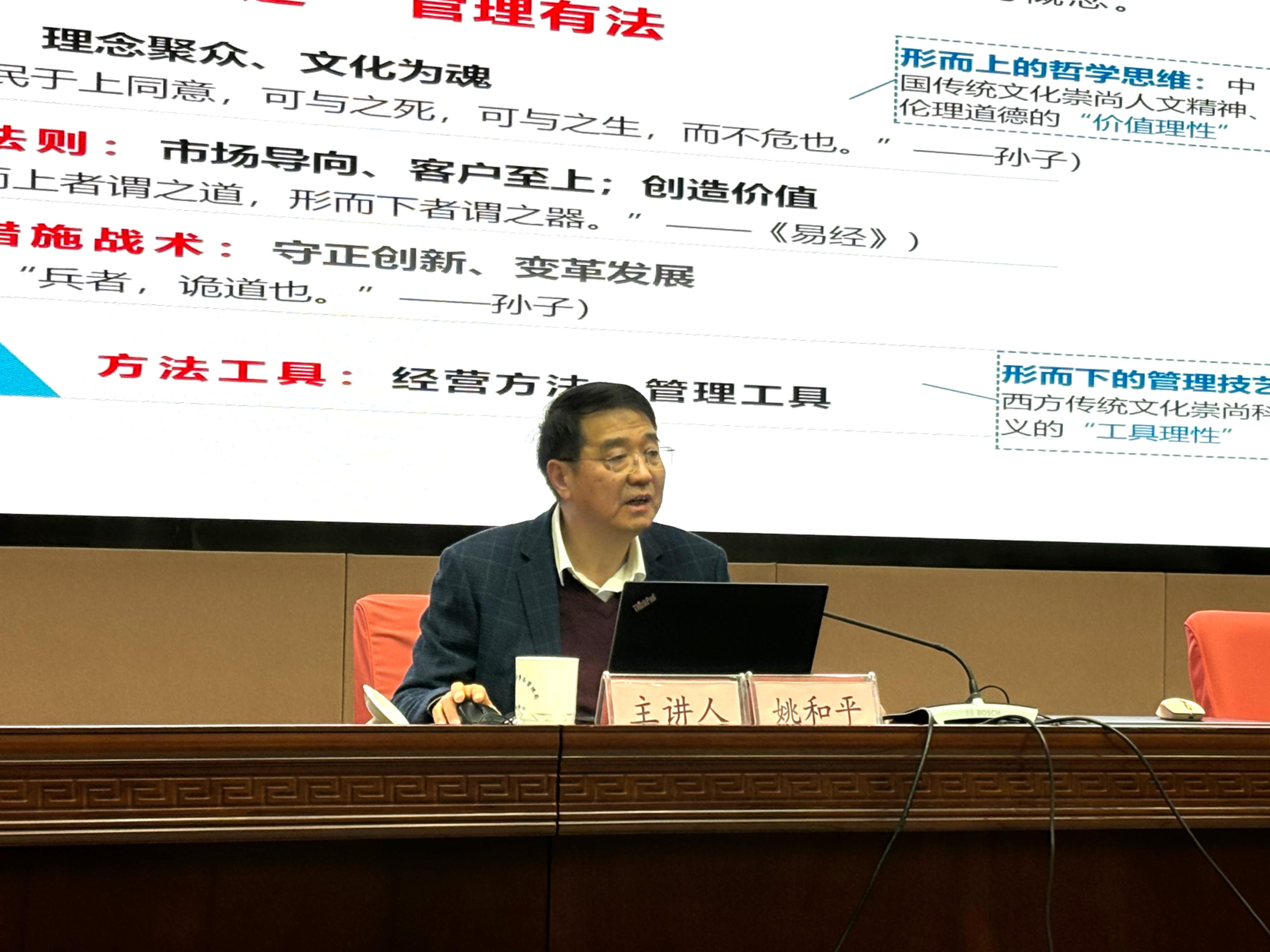 姚和平董事长基于经营中的困惑迷茫,以丰富生动的经营管理实践案例,分享了“有道”管理实践在价值理念(“道”)、本质法则(“法”)、措施战术(“术”)和方法工具(“器”)四个层面的行动和做法;并提出“胜”与“战”、“长”与“短”、“心”与“力”、“知”与“行”等“有道”管理实践九个方面的关键问题,强调经营管理的要求在于知行合一。