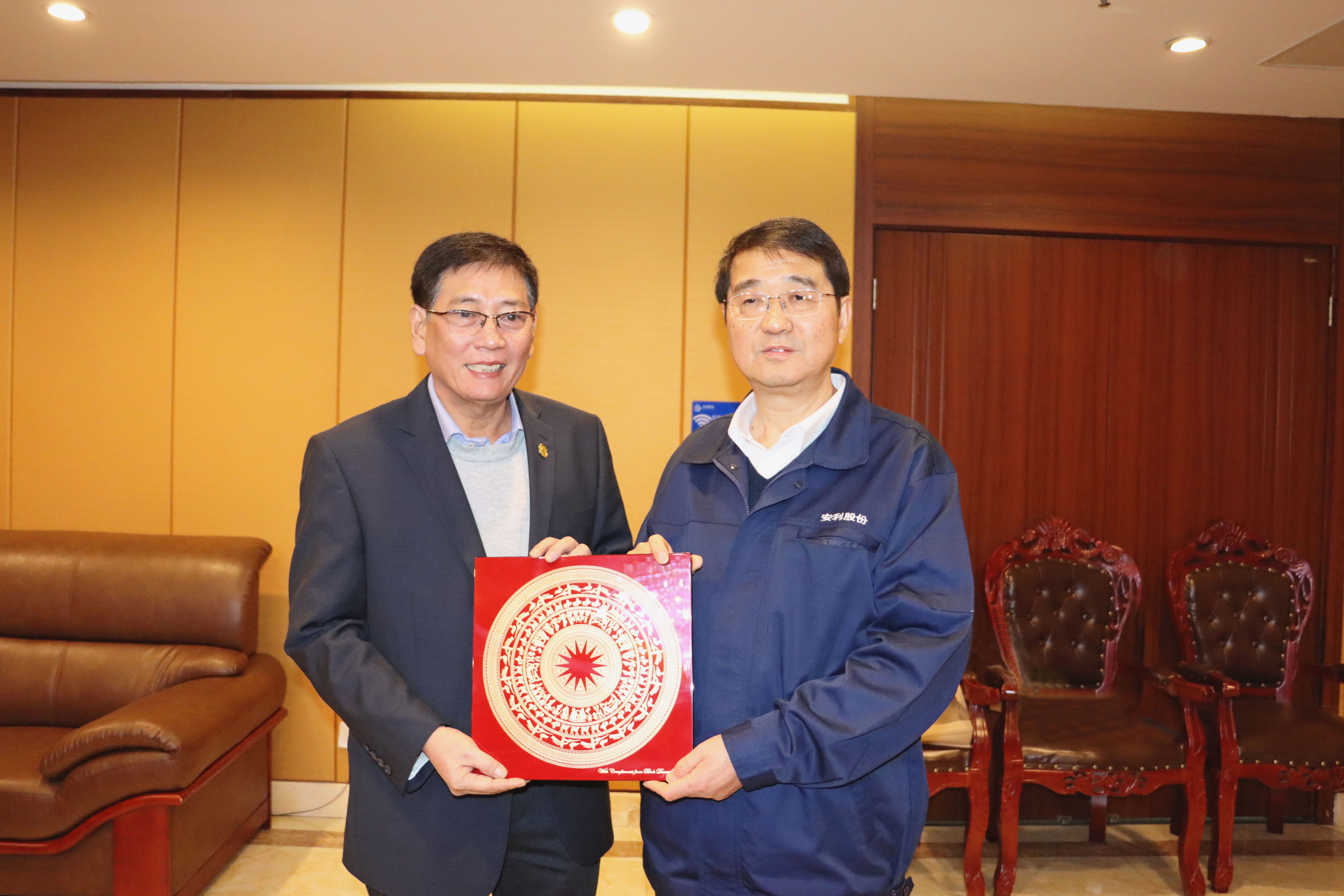 1月8日,越南平阳省人民委员会常务副主席梅雄勇,率越南平阳省代表团一行12人来皖访问,受到安徽省政府副省长孙勇亲切会见,并签署安徽省与平阳省建立友好省际关系意向书。代表团成员有平阳省人民议会主席阮文禄、平阳省省会土龙木市人民委员会主席阮秋菊、平阳省外事厅副厅长阮氏翠玲、平阳省计划与投资厅副厅长郑黄俊英、平阳省工业投资开发公司副总陈氏红明,以及越南中国商会安徽企业联合会相关领导。1月9日下午,代表团一行来到安利股份,安利股份(300218.SZ)董事长、总经理姚和平接待。